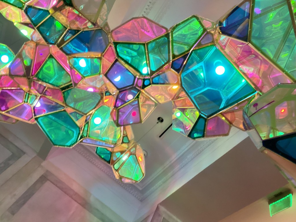 ***Photo above taken during a hotel stay in Kentucky; the hotel uniquely had a gallery in the main lobby and this particular piece stretched across the ceiling in vibrant color and texture.